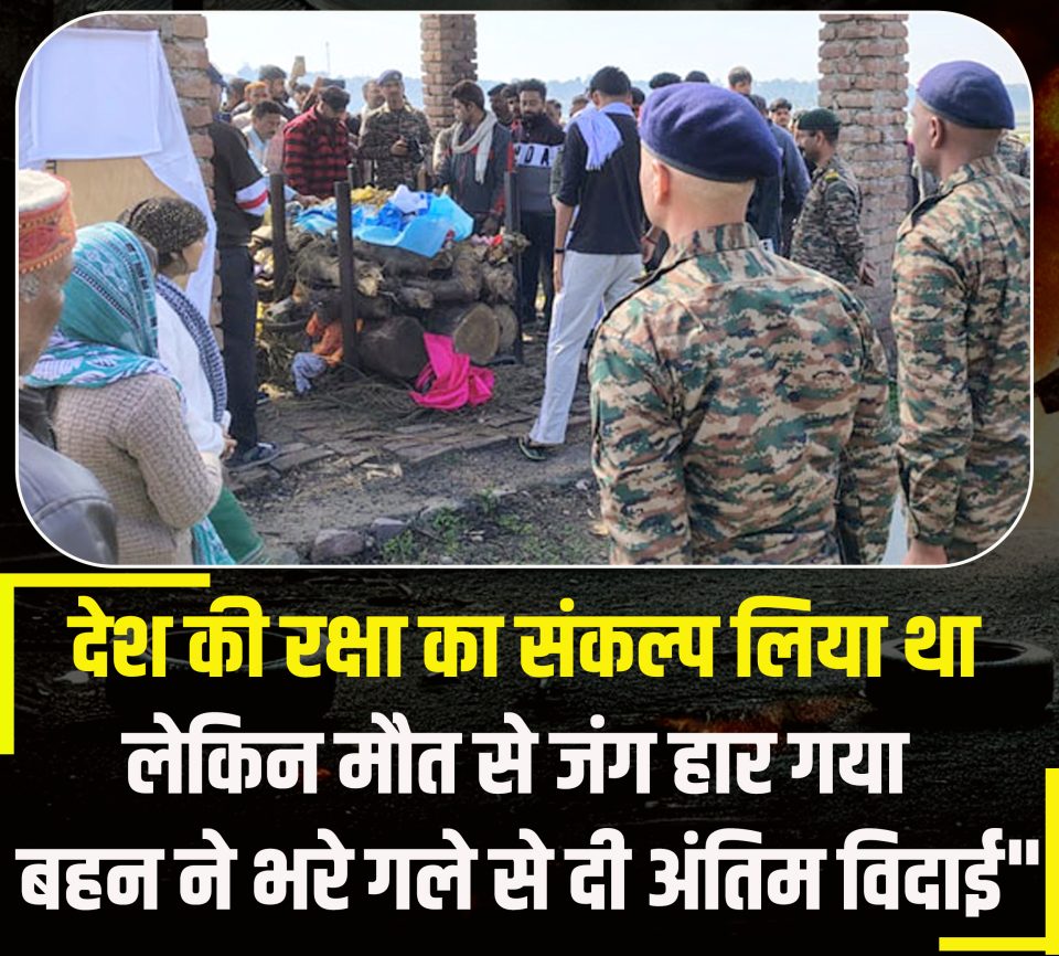 शुक्रवार को जब अनिकेत की पार्थिव देह घर पहुंची, तो पूरा गांव गमगीन हो गया। हर तरफ चीख-पुकार मच गई, मां की आंखों से आंसू रुकने का नाम नहीं ले रहे थे और बहन आकांक्षा बेसुध थी। आर्मी की टुकड़ी ने उसे अंतिम सलामी दी, और भारी मन से बहन ने अपने वीर भाई को मुखाग्नि दी।