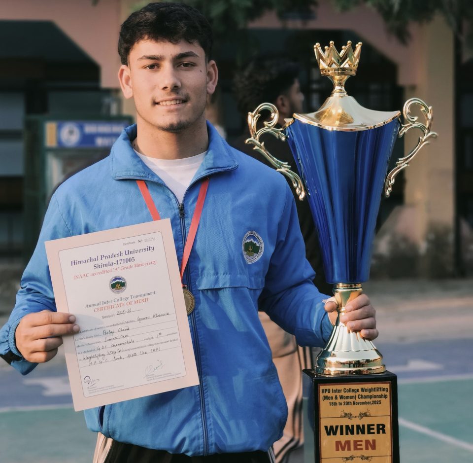 महाराणा प्रताप राजकीय महाविद्यालय, अंब (ऊना) में 18 से 20 नवंबर तक आयोजित इस तीन दिवसीय प्रतियोगिता में गौरव खनौरिया ने शानदार प्रदर्शन करते हुए कुल 190 किलोग्राम भार उठाया। इसमें उन्होंने स्नैच में 85 किलोग्राम और क्लीन एंड जर्क में 105 किलोग्राम वजन सफलतापूर्वक उठाकर स्वर्ण पदक पर कब्ज़ा जमाया।