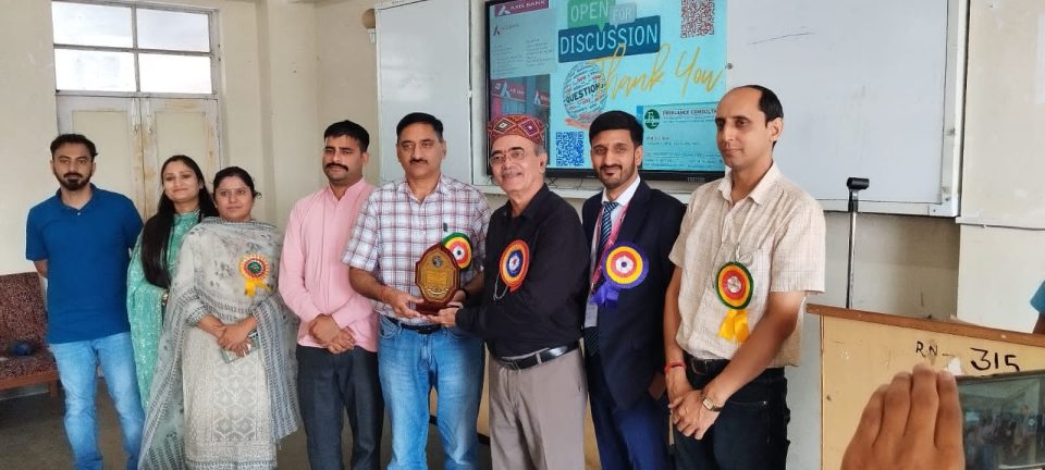 आज दिनांक 29 सितंबर 2023 को पंडित संतराम राजकीय महाविद्यालय में ‘कॉमर्स एवं मैनेजमेंट सोसाइटी’ ने कॉलेज ‘करियर एवं काउंसलिंग गाइडेंस सेल’ की सहायता से बैंकिंग तथा साइबर धोखाधड़ी विषय पर एक आख्यान का आयोजन किया. कार्यक्रम में श्री लकी गुप्ता, शाखा प्रमुख एक्सिस बैंक, पालमपुर तथा डॉक्टर अतुल, सेवानिवृत्ति निदेशक तथा पूर्व वित्तीय कॉम्प्ट्रॉलर कृषि विश्वविद्यालय, पालमपुर मुख्य अतिथि तथा वक्ताओं के रूप में शामिल हुए. इस कार्यक्रम की अध्यक्षता कालेज प्रधानाचार्य डॉक्टर महेंद्र पाल द्वारा की गई. कार्यक्रम का संचालन श्री यश पाल, सहायक आचार्य कॉमर्स तथा समृति, छात्रा बीकॉम द्वितीय वर्ष के द्वारा किया गया. डॉ अतुल तथा श्री लकी गुप्ता ने बैंकिंग के क्षेत्र में हो रहे बदलावों पर विस्तार से प्रकाश डाला तथा साथ ही उन्होंने वित्तीय साक्षरता के महत्व को भी समझाया.