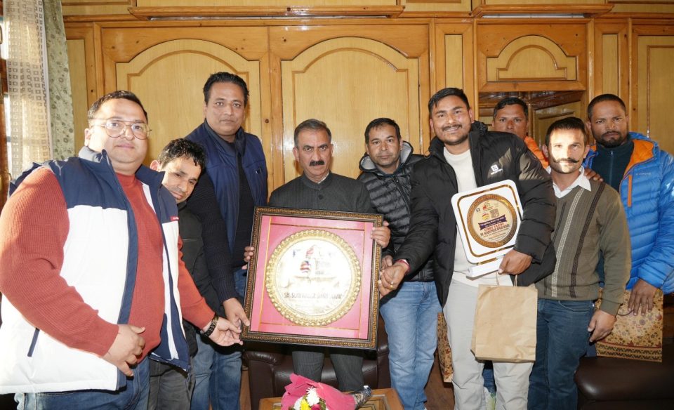 हिमाचल प्रदेश बिलिंग पैराग्लाइडिंग एसोसिएशन के एक प्रतिनिधिमंडल ने अध्यक्ष अनुराग शर्मा के नेतृत्व में आज यहां मुख्यमंत्री ठाकुर सुखविंद्र सिंह सुक्खू से भेंट की। उन्होंने कांगड़ा जिले के बीड़ बिलिंग में बीते माह नवंबर में पैराग्लाइडिंग वर्ल्ड कप के सफल आयोजन के लिए मुख्यमंत्री का आभार व्यक्त किया। प्रतिनिधिमंडल ने मुख्यमंत्री को हिमाचली टोपी, शॉल व स्मृति चिन्ह देकर सम्मानित किया।